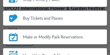 Within the + button on the App home screen, either choose Buy Tickets OR Make or Modify Park Reservations.
