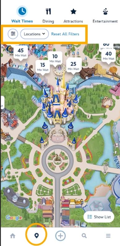 You can toggle between wait times, dining, attractions. This is similar to the Tip Board, but you can only view.